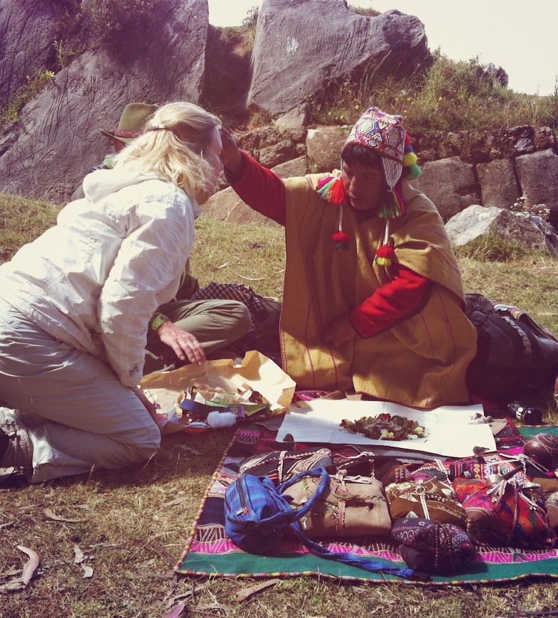 The mountains in Peru have personal names, like Old Man Mountain (Machu Picchu) and Young Man Mountain (Huayna Picchu). Sacsayhuaman sounds a lot like “Sexy Woman” but actually means Night Constellation of the Hawk. These great peaks have their own spirits as well—Apu—and it was common for our guides, and for us, to refer to and address the Apu directly. Through “conversation” of sorts with the Apus, one had the sense of being able to judge the moods and intentions of the mountains. I recall standing as close to the edge of a terrace as I dared at Machu Picchu, looking out at the sweep of immense peaks before me; I could perceive them shifting and moving, I understood more deeply how ancient they were—and how fleeting and impermanent my own life was in comparison.